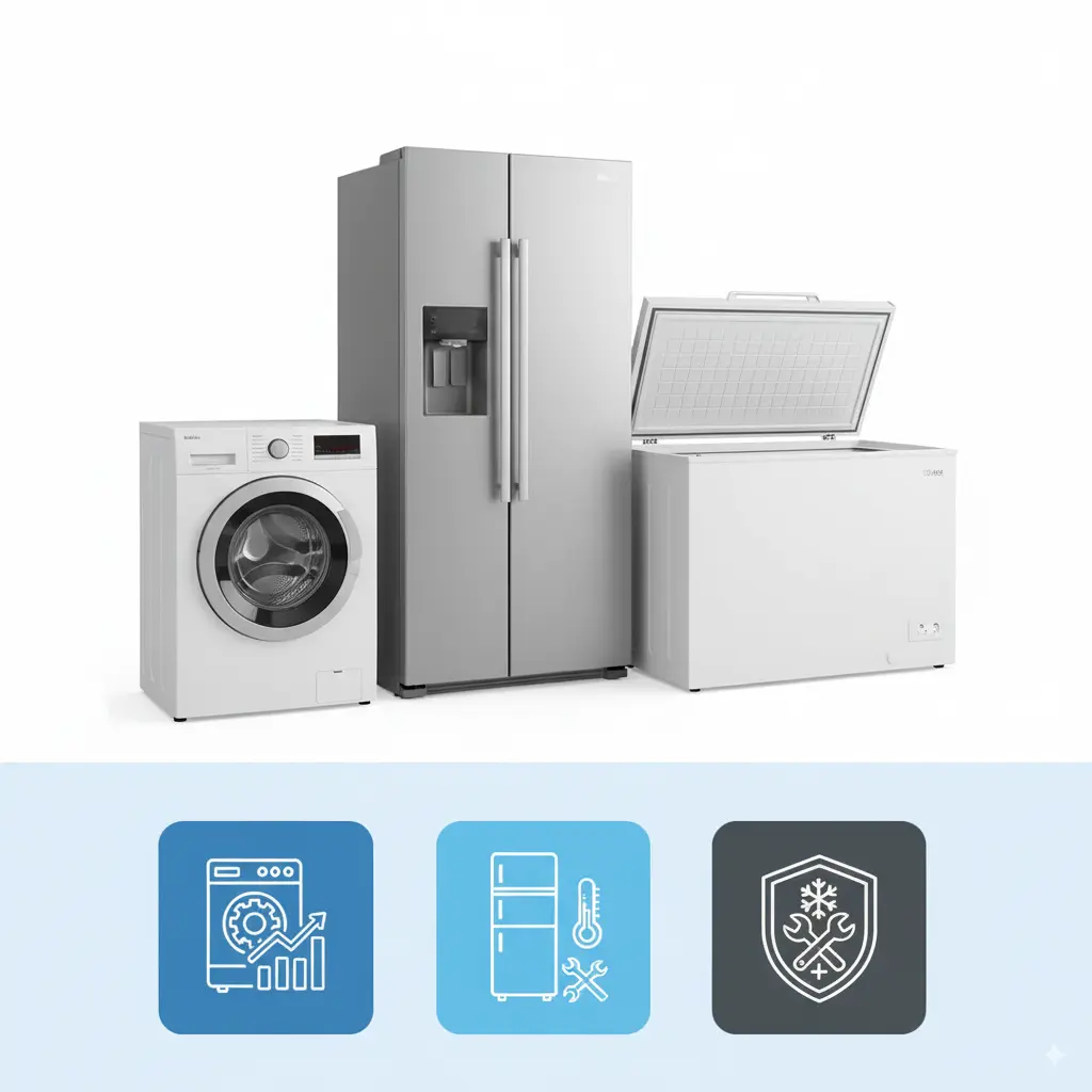 نوفر خدمات صيانة لجميع أنواع الأجهزة المنزلية لمختلف الماركات العالمية والمحلية، مع استخدام قطع غيار أصلية لضمان الأداء السليم والحفاظ على عمر الجهاز. تشمل خدماتنا صيانة الثلاجات، الغسالات، الشاشات، التكييفات، الميكروويف، الديب فريزر، غسالات الأطباق، السخانات، والبوتاجازات